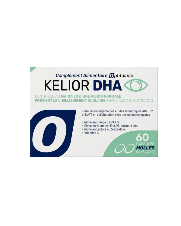 Nos compléments alimentaires (Ophtalmic Hydrofeel Larmes, Ophtalmic Kelior DHA) agissent de l'intérieur en apportant des nutriments essentiels pour soutenir votre confort visuel.
