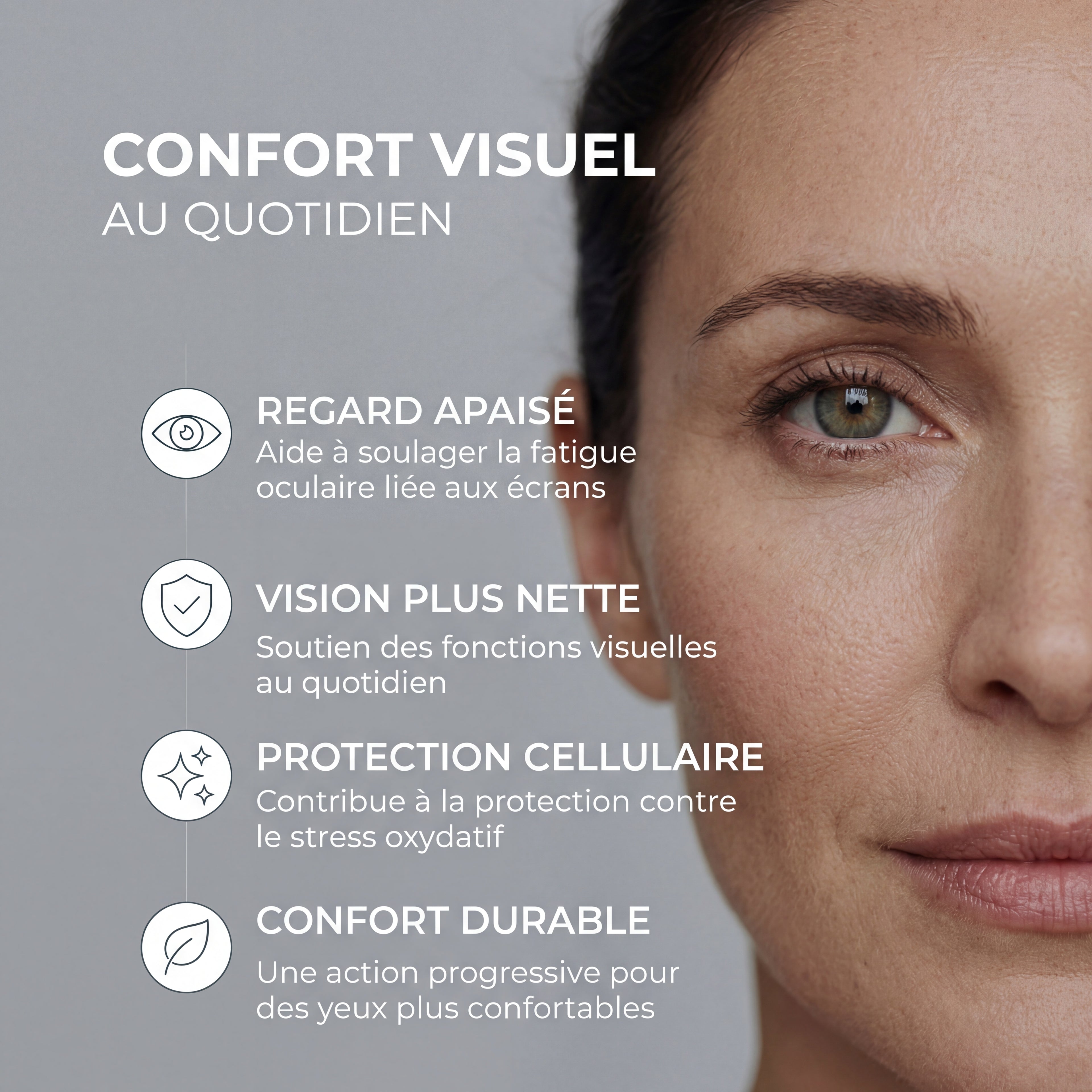 Pour la sécheresse oculaire et la fatigue visuelle liée aux écrans, nous